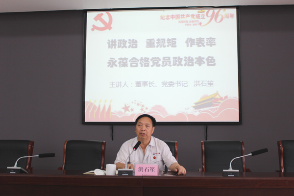 中鋼天源董事長、黨委書記洪石笙作《講政治、重規(guī)矩、作表率,永葆合格黨員政治本色》的專題黨課報告,報告從“講政治是合格黨員的根本要求、重規(guī)矩是合格黨員的基本底線、作表率是合格黨員的根本落腳點三個方面”進行了講解,要求全體黨員要進一步增強發(fā)展的信心,嚴以修身、勇于負責、敢于擔當,做到“政治合格、執(zhí)行紀律合格、品德合格、發(fā)揮作用合格”,不忘初心,永葆合格黨員政治本色,充分發(fā)揮先鋒模范作用,抓好當期生產經營,千百百計完成今年目標任務,創(chuàng)造更好業(yè)績。
